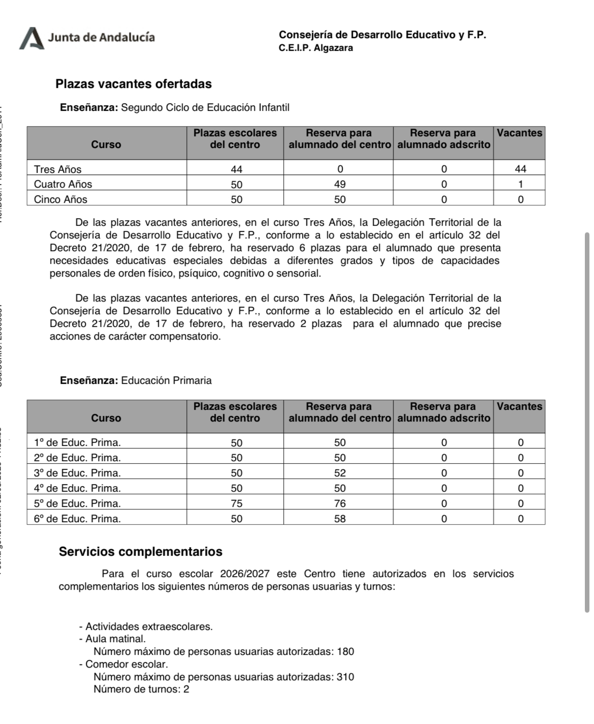 Vacantes curso 2026/27: